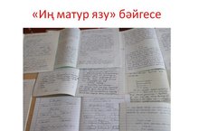 Түбән Наратбаш төп мәктәбендә татар теле һәм әдәбияты декадасы кысаларында 22 нче апрель көнне “Иң матур язу”, “Иң пөхтә дәфтәр” бәйгеләре үткәрелде. “Иң пөхтә дәфтәр” бәйгесендә 5 нче сыйныфтан Хайруллин Илмаз һәм Вәлиева Алсу; 6 нчы сыйныфтан Галиуллина Гөлназ; 7 нче сыйныфтан Әхәтова Энҗе һәм Әхмәтшина Зилә; 8 нче сыйныфтан Шәкүрова Айгөл һәм Кадыйров Фаил; 9 нчы сыйныфтан Галимҗанова Алинә һәм Вәлиуллина Альбина җиңүче дип табылды. “Иң матур язу” бәйгесендә Вәлиева Алсу (5 с.), Галиуллина Гөлназ (6 с.), Вәлиев Инсаф (7 с.), Хәйретдинова Эльвира (8 с.) һәм Әхмәдуллина Рузана (9 с.) җиңеп чыкты. 22.04.2016
