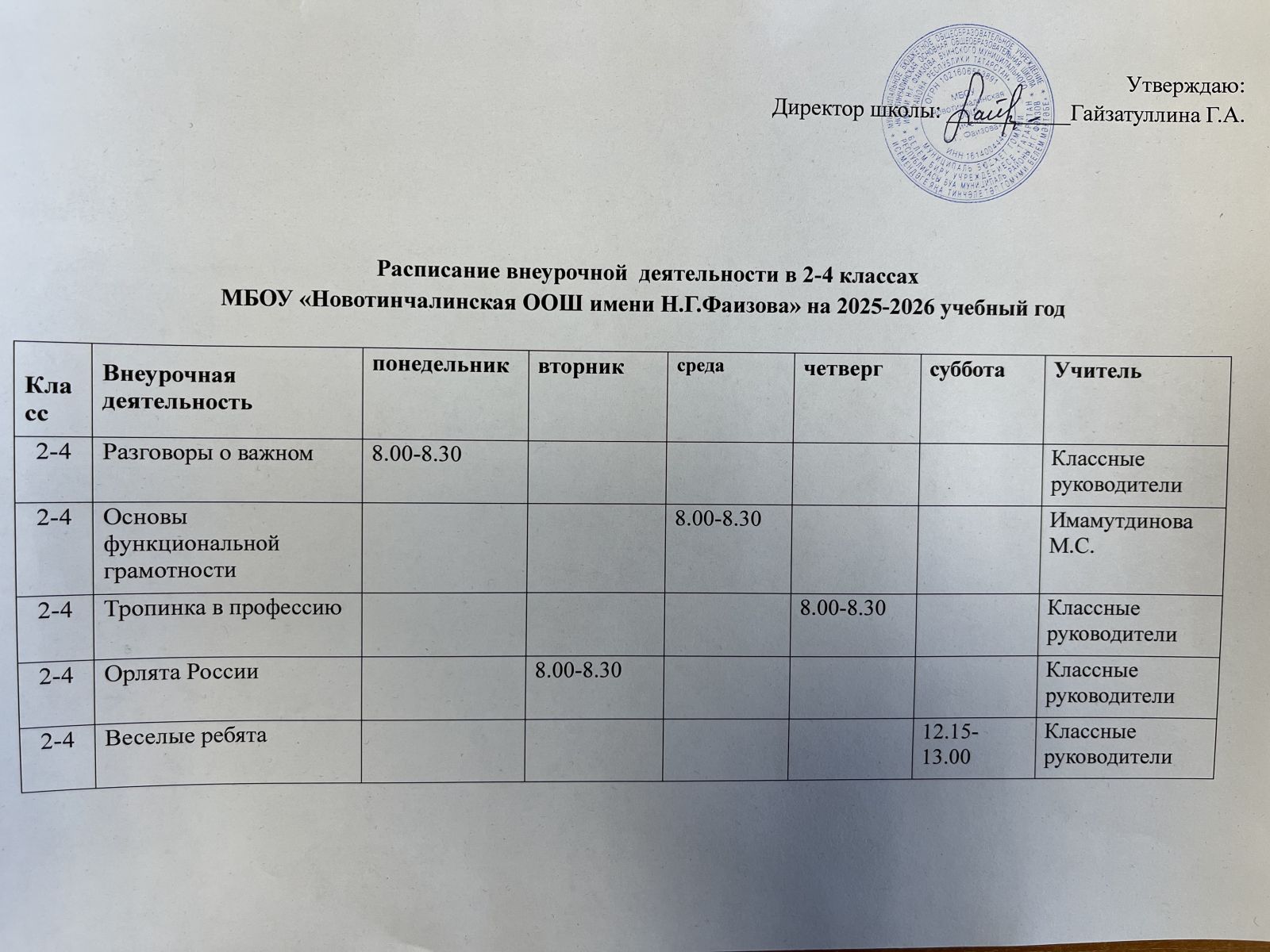 Расписание внеурочной деятельности начального общего образования на 2025-2026 учебный год