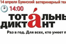 Сегодня,14 апреля, в 14.00 Буинский ветеринарный техникум приглашает буинцев на «Тотальный диктант-2018».