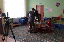 28 ноября к нам приехала сьемочная группа телеканала ГТРК Татарстан.Первым делом посмотрели красивый фасад здания после капремонта,развлечение старшей группы на прогулке.А затем ознакомились с режимом дня младшей группы,присутствовали во врем беседа-игры по ПДД (Игры по лэпбуку) и обеда в старшей группе .