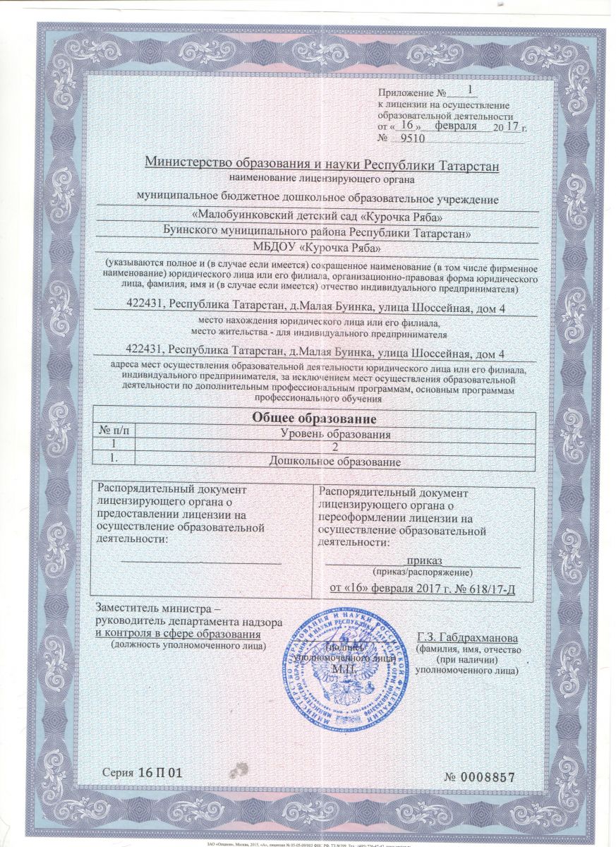 Лицензия на осуществление образовательной деятельности от 16.02.2017 года