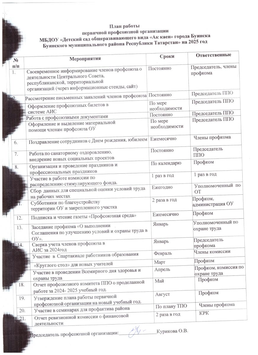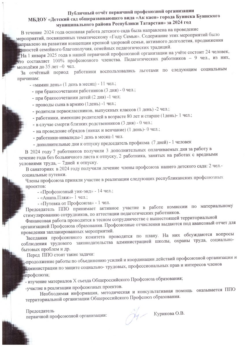 Председатель первичной профсоюзной организации организации: Курикова Ольга Владимировна, телефон 89274072731 Электронная почта: olga.fah@mail.ru