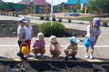 Огород в детском саду – это ещё и возможность видеть результаты своей работы. Совместный труд даёт возможность научиться ответственности, способствует формированию трудовых навыков и объединению детского коллектива. И, конечно, труд на свежем воздухе способствует сохранению и укреплению здоровья ребят. Сегодня дети средней группы поливали цветы на клумбе и помогали полоть сорняки . -
