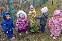 Продолжается работа по озеленению территории детского сада. Сегодня высажено еще 5 ёлочек.