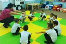 Кружок "Крепышок" в средней группе "Светлячки". Тема занятия: "Путешествие в осенний лес". Ребята учились имитировать повадки лесных жителей, совершенствовали навыки ходьбы и бега. В конце занятия поиграли в подвижные игры.