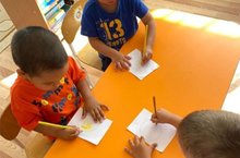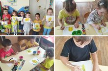 В рамках тематического дня "Путешествие в Сказкоград" воспитанники средней группы совместно с воспитателем прочитали сказку "Колобок", поделились своими впечатлениями о прочитанном, а потом изобразили главного героя на бумаге.