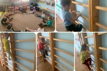 Спортивные занятия в средней группе проходят очень весело и интересно. Ребята с удовольствием лазают по гимнастической стенке, ползают по скамейке, прокатывают мячи друг другу. Такие упражнения влияют на физическое развитие и здоровье детей.