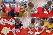 На кружке "ЭКОлята" дети второй группы раннего возраста познакомились с некоторыми названиями рыб, узнали об их внешнем виде и образе жизни. После этого ребята раскрасили рыбок пальчиками.