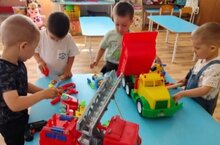 В рамках тематической недели "Горящие сердца" по пожарной безопасности в средней группе провели коллективное занятие пластилинографии на тему "Пожарная машина".