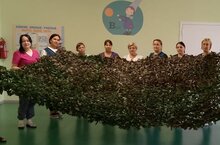 Под таким девизом сотрудники нашего детского сада приняли участие в плетении маскировочных сетей для фронта с целью поддержки российских военнослужащих, участников специальной военной операции . Техника плетения маскировочной сети несложная, но трудоёмкая. Каждый, кто плетет сети, верит, что они помогут сохранить чью-то жизнь.