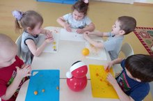 Продолжать учить детей скатывать шарики из пластилина круговыми движениями между ладоней.
