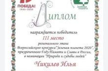Поздравляем воспитанника детского сада "АБВГДЕЙКА" Чикилева Илью и воспитателя Горшкову Людмилу Александровну с победой во Всероссийском конкурсе "Зелёная планета 2020". Желаем дальнейших успехов.