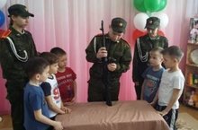 Сегодня в гости к воспитанникам пришли кадеты «СОШ 1 с УИОП» города Буинска. Офицер воспитатель Галимов Р.З.рассказал детям о том, как это почетно и ответственно быть защитником своей страны. Он познакомил детей с жизнью кадетского класса. Офицер-воспитатель продемонстрировал детям автомат Калашникова, а его ученик показал приемы сборки и разборки автомата. Любознательные малыши поучаствовали в строевой подготовке вместе с кадетами. Гости пожелали дошкольникам расти настоящими патриотами Родины.