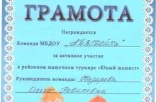 Сегодня сборная команда МБДОУ "АБВГДЕЙКа" (МБДОУ "Дюймовочка", "Сорок-Сайдакский детский сад", "АБВГДЕЙКа") принимала участие в турнире "Юный шашист" и была награждена грамотой за участие в турнире.