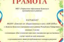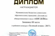 В муниципальном конкурсе "Зеленый огонек-2017" детский сад занял 3 место среди детских садов Буинского муниципального района.