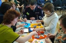 Сегодня на базе МБДОУ "Аленушка в межрегиональном семинаре работников ДО по теме: "Современные игровые формы в работе с детьми по изучению ПДД" приняла участие Гималиева З.Х. с мастер-классом "Дядя Степа -полицейский". Творческая работа -аппликация методом "тычкования", очень понравилась всем присутствующим.