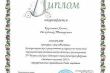 МБДОУ "АБВГДЕЙКа" стало Лауреатом конкурса "Эко-объектив" XV Всероссийского экологического форума "Зеленая планета 2017"и награждено Дипломом.