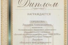 Педагоги нашего ДОУ постоянно повышают профессиональный уровень и распространяют опыт своей работы участвуя в мероприятиях разного уровня. Воспитатель Горшкова Л.А. участвовала в "Восьмом Международном Слете учителей-Сочи-2017". Она выступила с темой "Очистим планету от мусора", стала Лауреатом и получила Диплом.