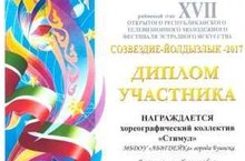 Дипломом участника награжден хореографический коллектив "Стимул" МБДОУ "АБВГДЕЙКа"в номинации "Хореография" младшая группа руководитель Елчиева Е.А. в районном этапе ХVII ОТКРЫТОГО РЕСПУБЛИКАНСКОГО ТЕЛЕВИЗИОННОГО МОЛОДЕЖНОГО ФЕСТИВАЛЯ ЭСТРАДНОГО ИСКУССТВА "СОЗВЕЗДИЕ-ЙОЛДЫЗЛЫК-2017". Поздравляем наших воспитанников!