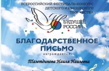 Балалар сәнгать мәктәбенең хор бүлеге укучылары, укытучы Таҗетдинова Наилә Наил кызы, "Россия киләчәге" Бөтенроссия балалар һәм яшүсмерләр иҗаты фестиваль-конкурсында катнаштылар. Сафина Лиана-1 дәрәҗә Лауреат, Туктаров Илназ - 3 дәрәҗә Лауреат. Котлыйбыз һәм киләчәктә дә уңышлар телибез!