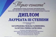 Халитова Римма Харис кызын балалар музыка мәктәпләре, балалар сәнгать мәктәпләре һәм башка мәгариф мәдәният һәм сәнгать учреждениеләре укучылары һәм укытучылары арасында I Халыкара ансамбль һәм оркестр музыкасы конкурсында III дәрәҗә лауреат дипломы белән котлыйбыз. Номинация: Фортепиано (Ансамбль).