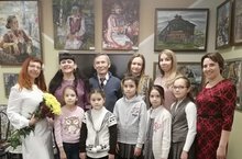 Выставку под названием "Объемлю мир...Герои моего времени" посетили преподаватели и учащиеся ДШИ, они подарили замечательной художнице песни.