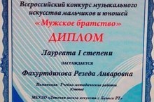 Фахуртдинова Резеда Анваровна стала лауреатом I степени во Всероссийском конкурсе музыкального искусства мальчиков и юношей "Мужское братство".