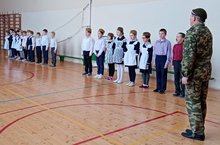 В рамках месячника провели конкурс "Аты-Баты шли солдаты" между 2-3 и 4 классами.