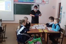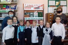 Ученики 1,4 классов посетили сельскую библиотеку с классными руководителями. ( Мулеева А.П., Шурбина И.Н.) Совместно с заведующей сельской библиотеки Гордеевой И.Н. провели классный час на тему «Сталинградская битва».