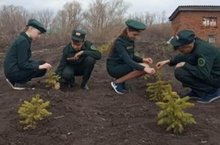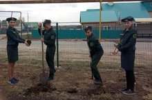 Активисты РДШ и члены отряда школьное лесничество "Рунга" в рамках Всероссийской акции "Дерево Победы" организовали посадку деревьев на территории школы"