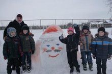 Учащиеся школы соревновались в лепке снежных фигур к Новому году на школьном дворе.Упоство и дружбу проявили обучающиеся 1 класса.Получилось неплохой Дед Мороз!