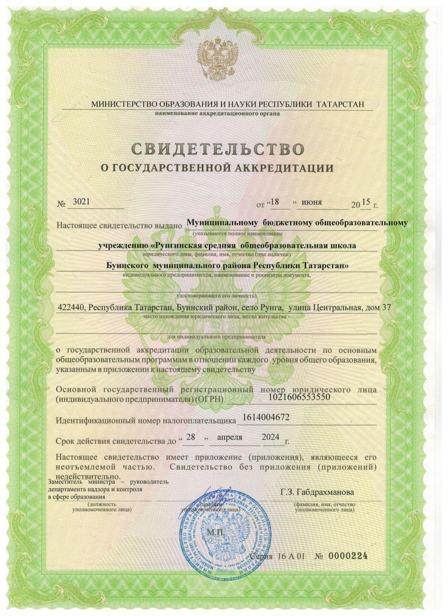 Муниципальное бюджетное общеобразовательное учреждение «Рунгинская основная общеобразовательная школа Буинского муниципального района Республики Татарстан»