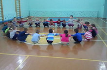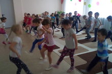 Мы зарядкой занимались:На носочки поднималисьИ тянули ручки ввысь,Ну-ка, солнышка коснись!А потом мы приседали,Меньше мышки в норке стали.Ну-ка, спрячемся от кошки:Носик прижимаем к ножке -