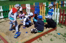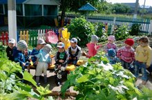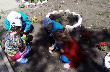 Работа детей в цветнике. 14.06.2017