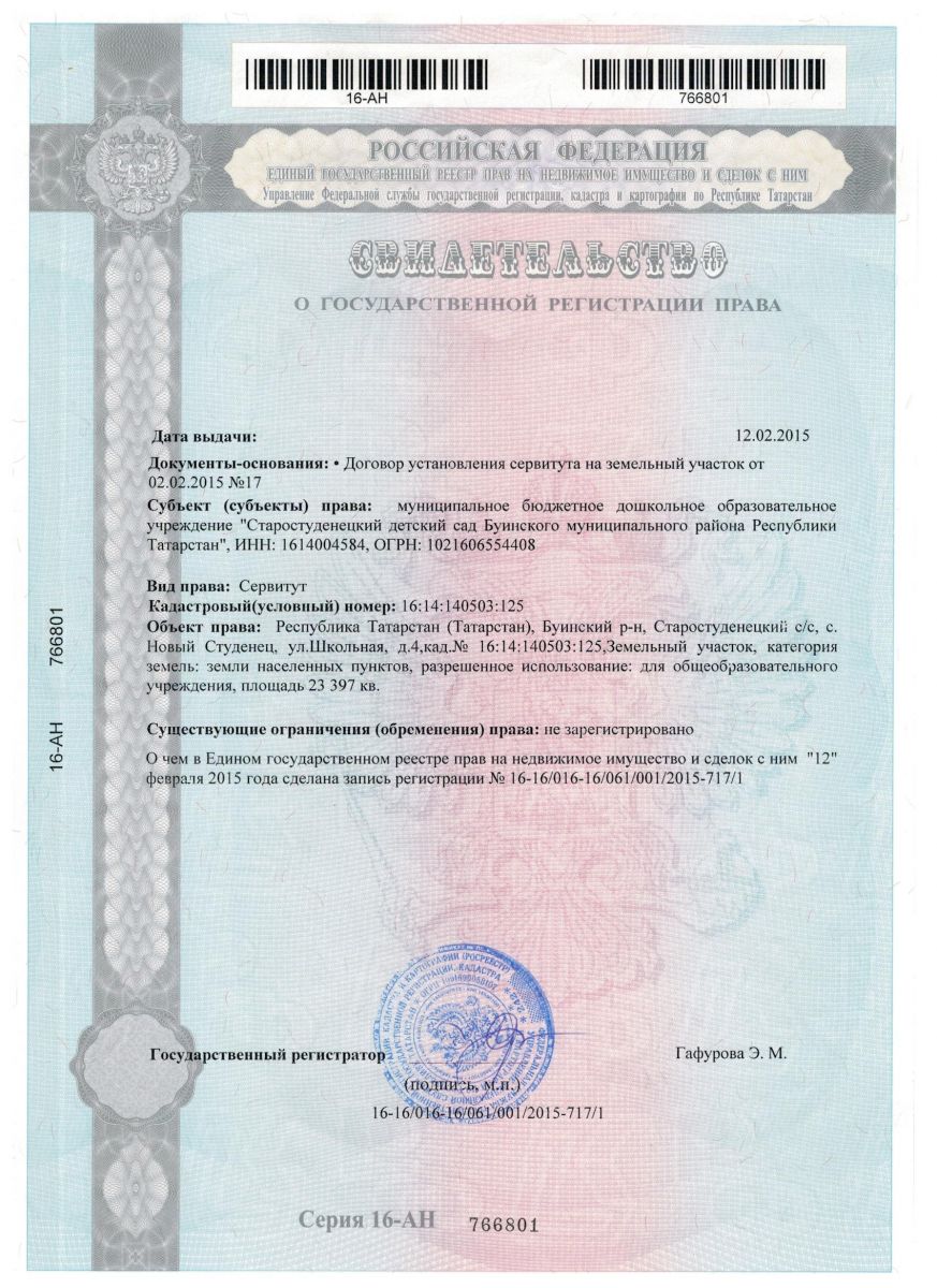 Свидетельство о регистрации земельного участка