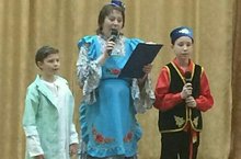 Участие на муниципальном этапе Республиканского конкурса народного творчества "Без бергә" по номинациям "Театр мод" и "Художественное чтение" 1.Мода күрсәтүдә мәктәбебезнең "Илһам" иҗат төркеме (Гайнетдинова И.С., Шәмсетдинова Ә.Р., Низамова Г.Ә.) һәм 5 сыйныф укучылары- М.Фәрит, Г.Тәүфыйк Хуҗа Насретдин -этнографик костюмын тәкъдим итте. 2. Нәфис сүз осталыгында 5 сыйныф укучысы Т.Гүзәл "Аерма мине туган илемнән" дигән бәет белән чыгыш ясады (Гәйнетдинова И.С.)