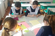 Отряд "Милосердие" 7 класса готовит открытки к 8 Марта! 07.03.2018