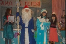 А во дворе нашей школы появились сказочные герои.У самых ворот школы встречает символ 2014 года-Лошадь,запряженная в сани,Дед Мороз,снегурочка.Под елями стоят три медведя, на ступе прилетела Баба Яга.Так же в гости на праздник пришли герои сказок "Репка","Три поросёнка","Курочка Ряба","Шурале"!