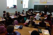 В рамках месячника безопасности детей проведена беседа инспектора ГИБДД с учащимися начальных классов по правилам дорожного движения. “Балалар иминлеге айлыгы” кысаларында мәктәптә ГИБДД инспекторлары башлангыч сыйныф укучылары белән әңгәмә үткәрделәр.