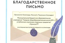 Муниципальное бюджетное общеобразовательное учреждение "Средняя общеобразовательная школа №1 c углубленным изучением отдельных предметов" г. Буинска Республики Татарстан