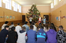 Сегодня, 24 декабря прошел бал маскарад для 9-11класов. На праздник пришли поздравить Дед мороз и Снегурочка, было много развлекательных конкурсов. Каждый участник получил сладкий подарок от главного героя нашего мероприятия.