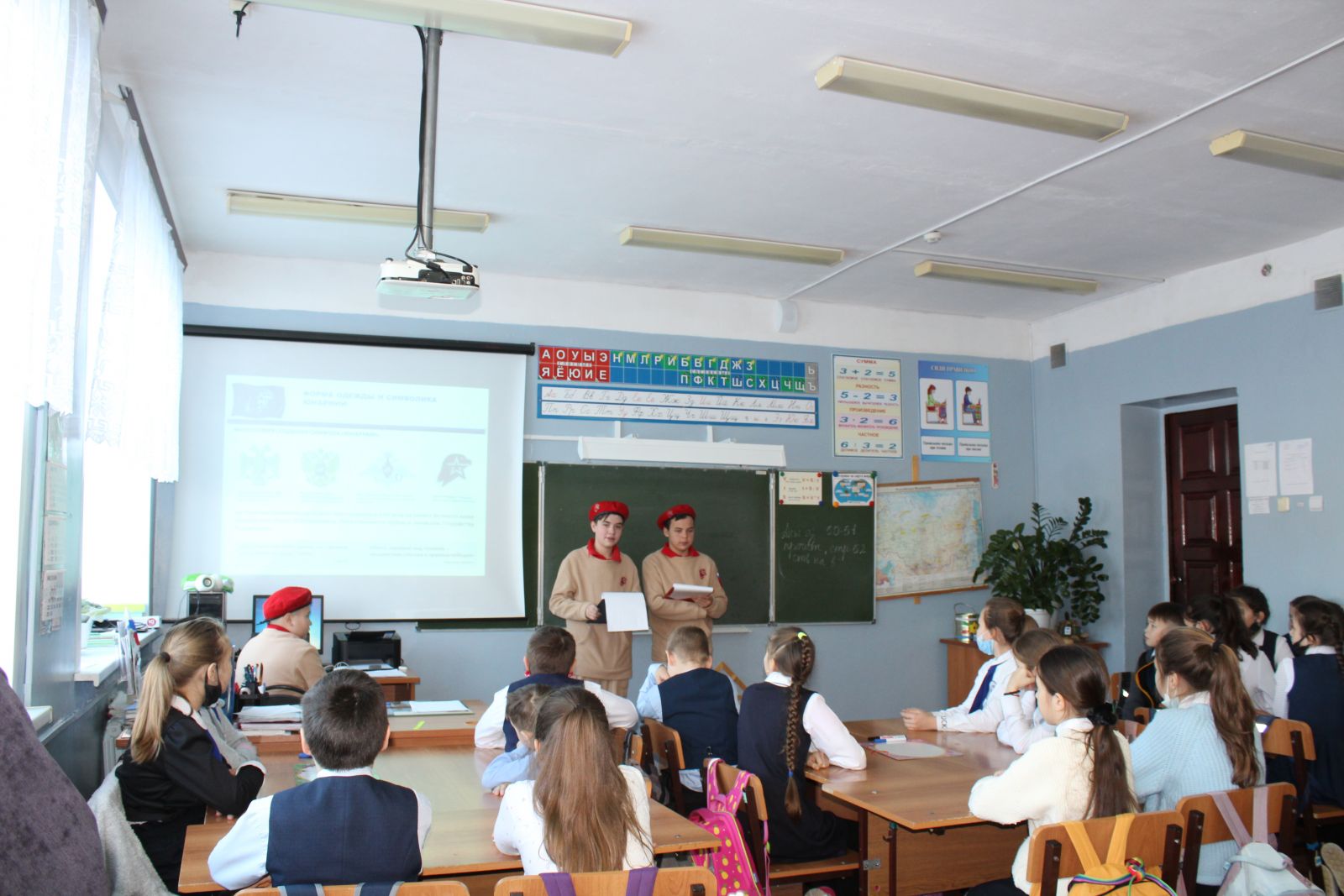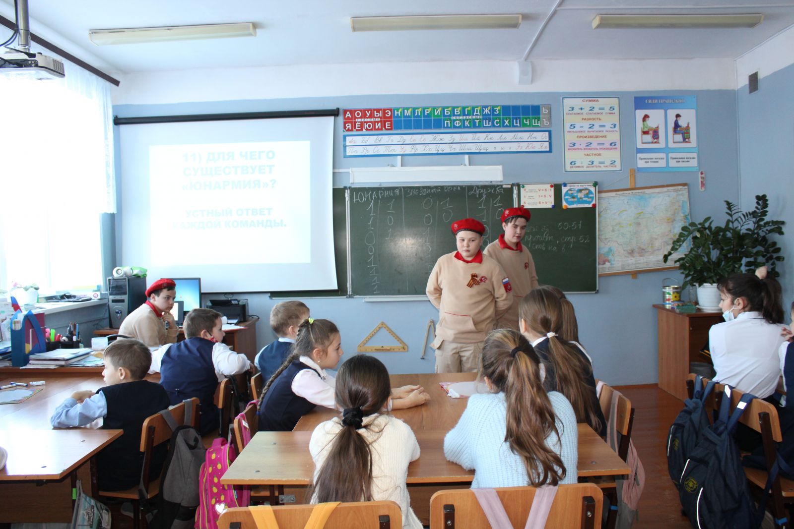 23.11.2021г активисты отряда им. М.Джалиля провели викторину в 4 кл. В начале мероприятия юнармейцы рассказали о движении Юнармия.