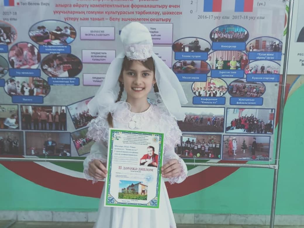 Ученицу 3 "б" класса Нафиеву Энже участвовавшую в V Республиканской научно-практической конференции школьников "Кояшлы ил" им. Ахмета Рашита и занявшую 2 место.