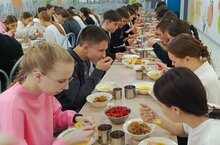 В завершении Дня открытых дверей будущие первоклассники полакомились вкусными блинчиками с вареньем в школьной столовой.