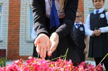 Сегодня в нашей гимназии прошла линейка, посвященная трагедии в Беслане. Учащиеся 8 «А» класса рассказали об этой трагедии гимназистам.