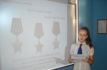 9 декабря в 7-а классе был проведён тематический классный час, посвящённый Дню Героев Отечества. Классный руководитель Замалиева Р.Р. рассказала учащимся об истории создания праздника: «До 1917 года в этот день (26 ноября по старому стилю) в России отмечался праздник георгиевских кавалеров, то есть тех, кто был награжден орденом Георгия Победоносца. Поэтому день 9 декабря был выбран не случайно. Статус высшей военной награды РФ был возвращен ордену в 2000 году. С 2007 года 9 декабря чествуют Героев Советского Союза, Героев Российской Федерации, кавалеров ордена Святого Георгия Победоносца и ордена Славы». В ходе этого мероприятия учащиеся ознакомились с некоторыми героическими победами Русской армии, именами мужественных солдат и генералов, героями настоящего времени.