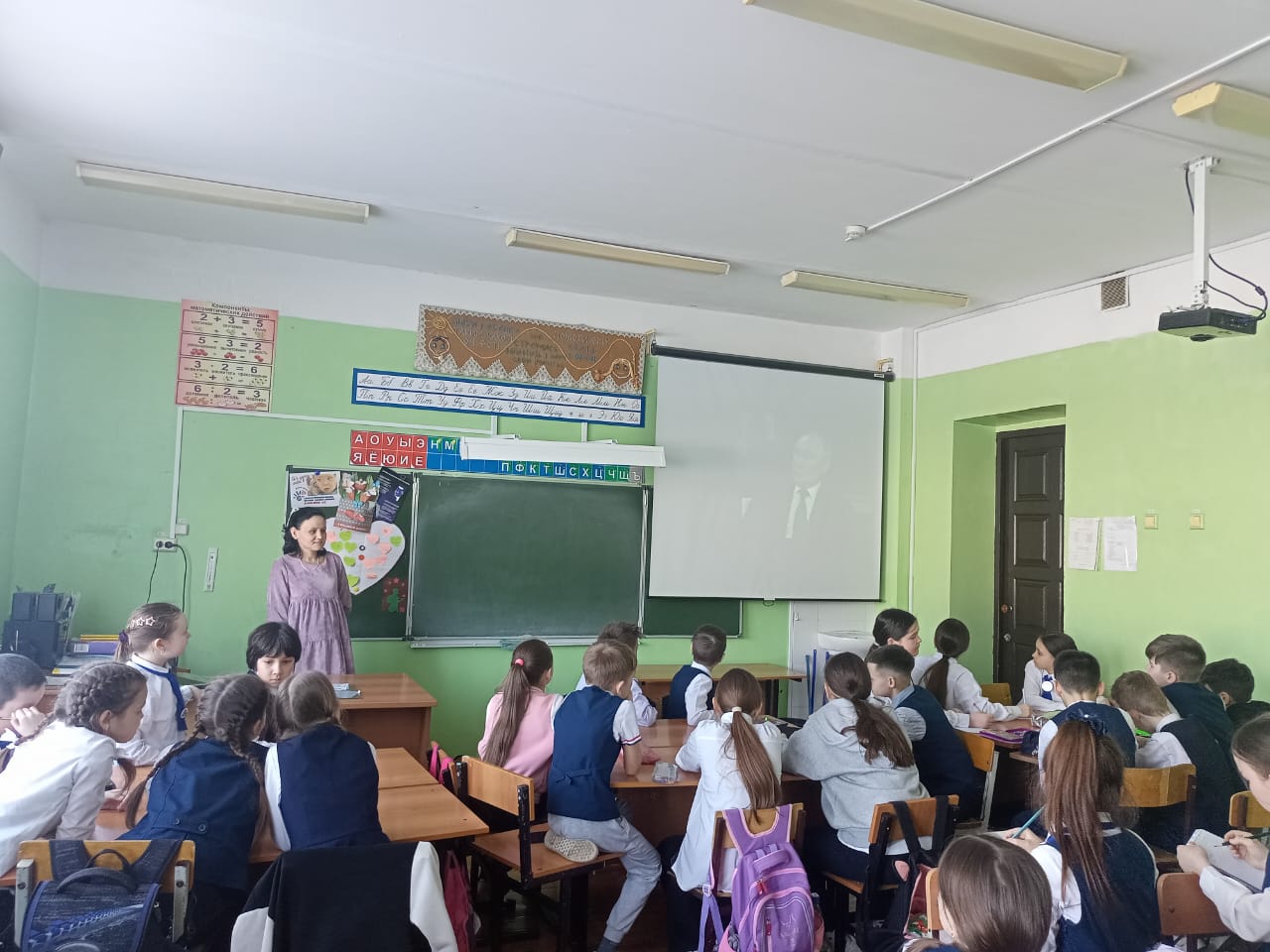 После линейки прошло занятие "Разговоры о важном", 11 марта 2024 года тема занятия «От южных морей до полярного края». В качестве основных задач сегодняшнего занятия обозначено воспитание любви и уважения к малой родине, расширение знаний о достижениях своего родного края и современной России в целом.