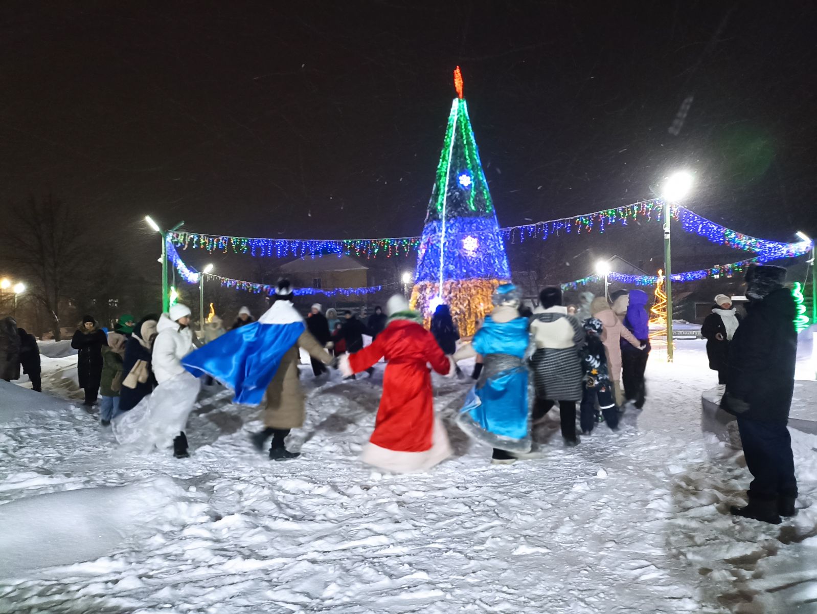 Волшебная и душевная атмосфера царила сегодня в парке сахарного завода. Для детворы и жителей города новогоднее представление организовали учащиеся и учителя Гимназии №5. Праздник начался с традиционной новогодней сказки, которая сопровождалась зажигательными танцами, веселыми играми, новогодними песнями и большим хороводом вокруг елки! Каждый ребенок рассказал стихотворение Дедушке Морозу и получил подарок.
