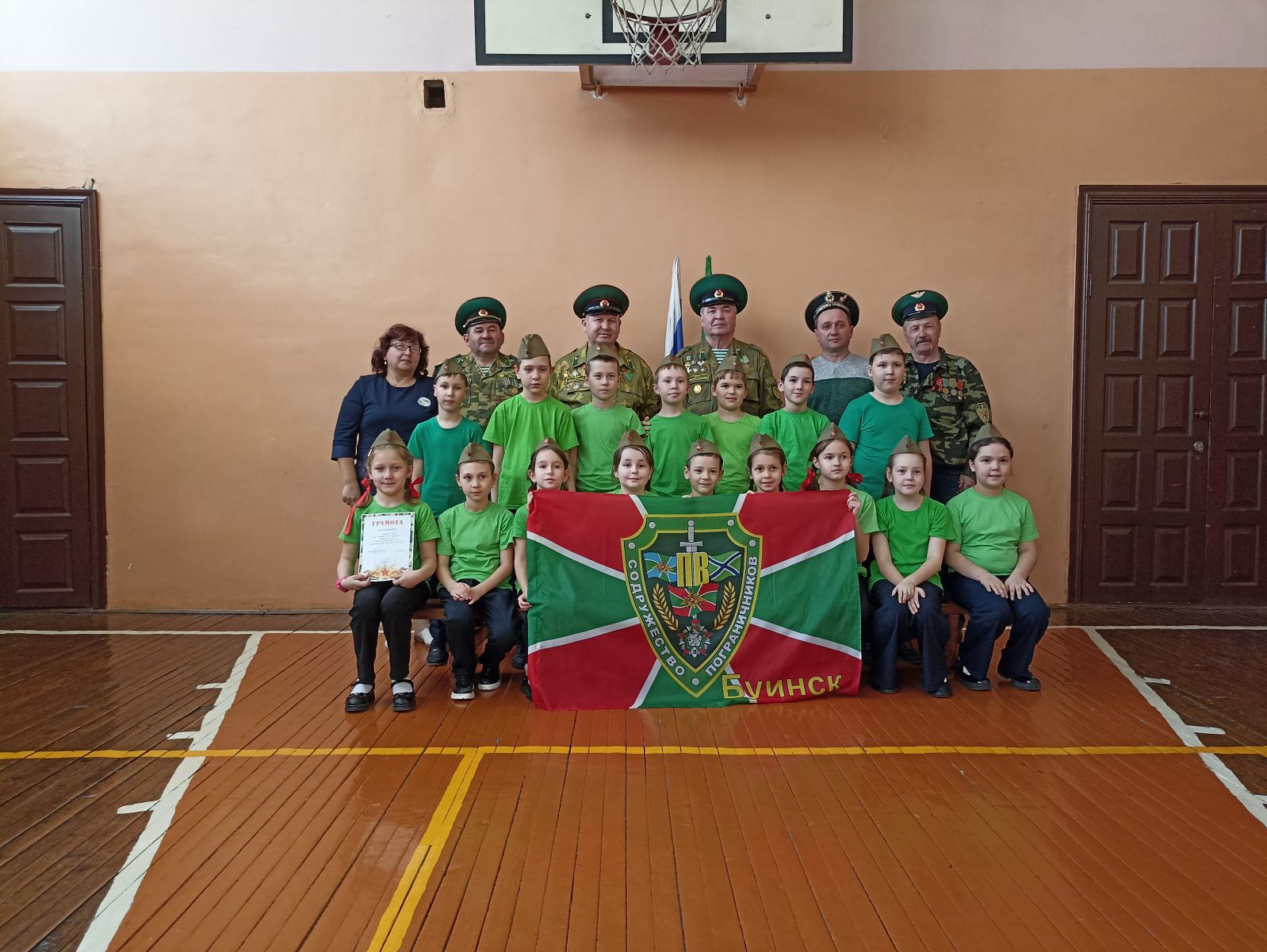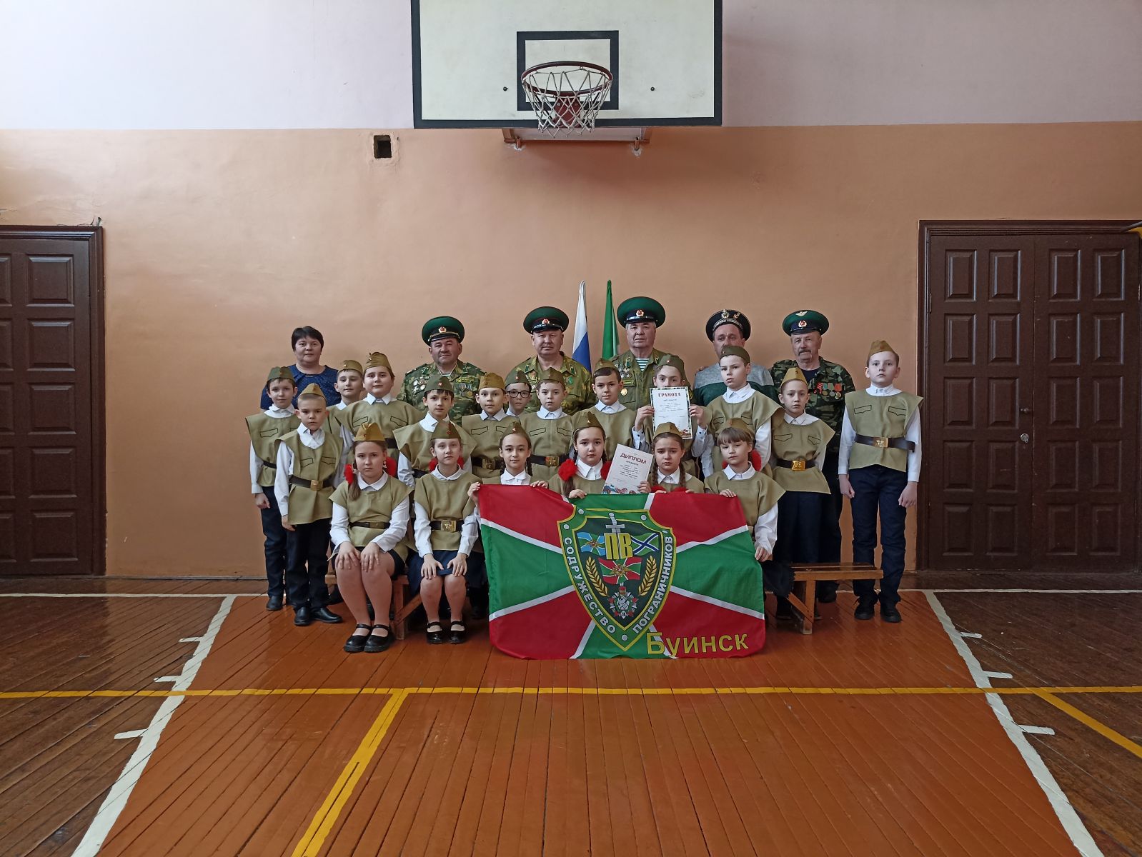 По итогам смотра строя и песни: 1 место заняла команда 4б класса.