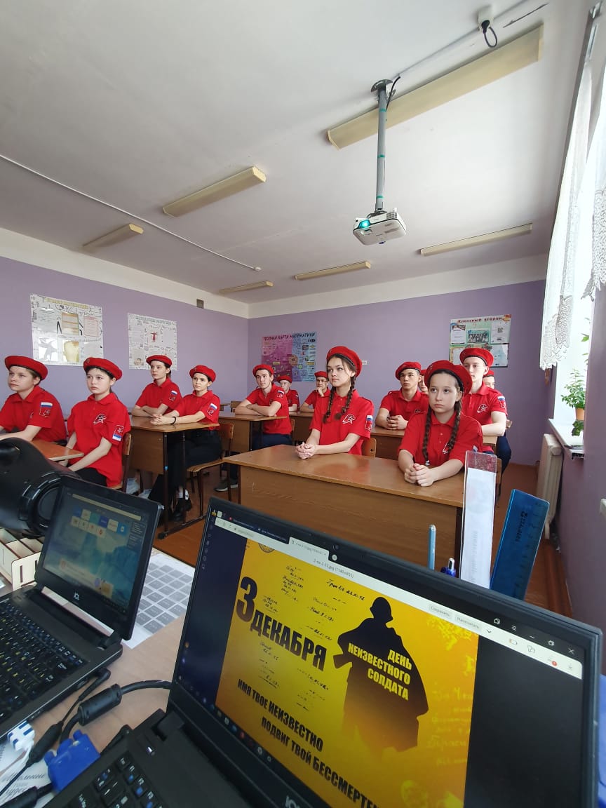 Сегодня, 3 декабря, в кадетском классе полицейского направления был проведён классный час «Имя твое неизвестно, подвиг твой бессмертен» посвященный «Дню неизвестного солдата», в течение которого учащиеся вспомнили историю возникновения памятного дня, почтили память погибших неизвестных солдат минутой молчания.